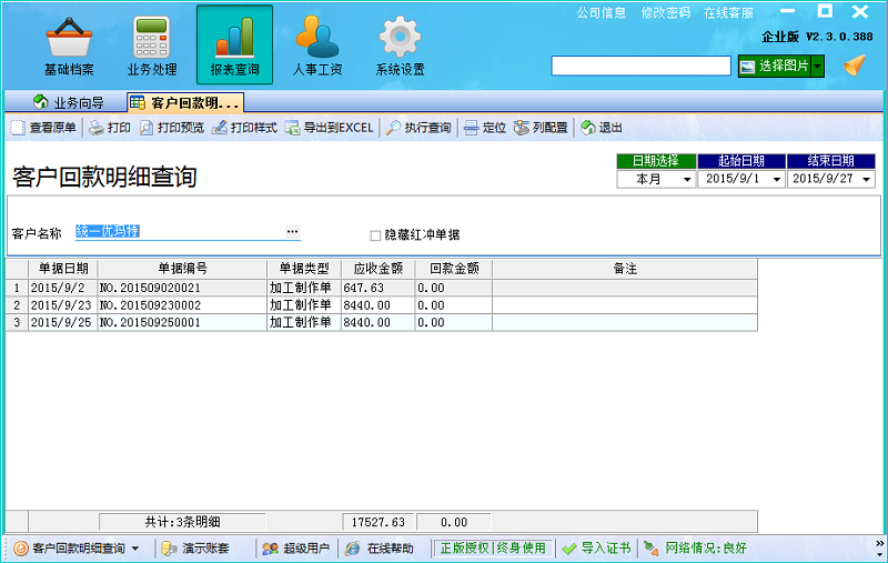在廣告公司管理系統(tǒng)中,與客戶對賬可以分為按明細對賬和按單據(jù)對賬。按照明細對賬,就在業(yè)務(wù)處理中,打開往來對賬,選擇客戶與日期,軟件會自動把客戶在改日期內(nèi)的嗦有單據(jù)都顯示出來,并且包括單據(jù)的總應(yīng)收金額與單據(jù)的具體明細