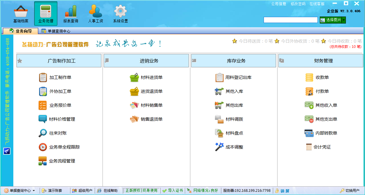 飛揚(yáng)動(dòng)力廣告公司管理軟件專業(yè)的廣告公司管理軟件,性價(jià)比是同行軟件之中最高的, 采用加密狗的方式加密保障你的數(shù)據(jù)安全。簡(jiǎn)單快捷的操作方式,清新簡(jiǎn)約的操作界面。