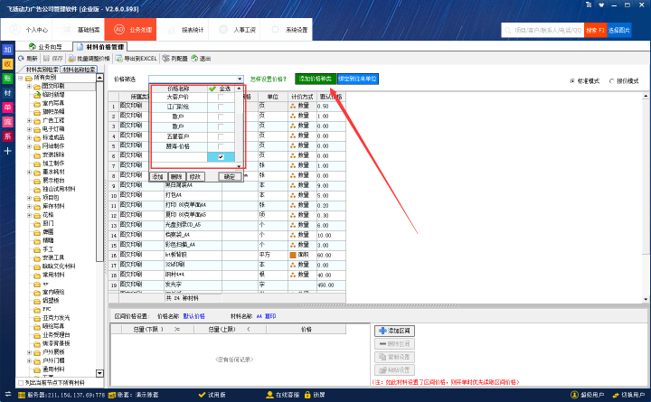 飛揚(yáng)動(dòng)力廣告公司管理軟件可以管理每一個(gè)客戶,可以根據(jù)客戶的合作關(guān)系,單獨(dú)綁定一套屬于客戶自己的價(jià)格報(bào)價(jià)。這樣,公司的管理者在給客戶開制作單的時(shí)候會(huì)自動(dòng)顯示屬于客戶自己的價(jià)格,避免不同客戶不同報(bào)價(jià)的尷尬場(chǎng)面。