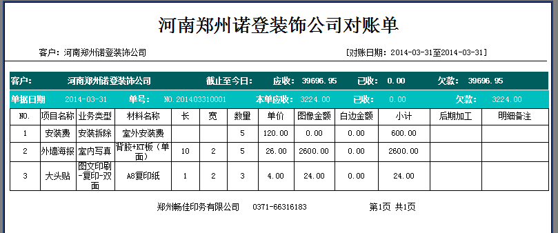 暢佳公司是一家印刷業(yè)務(wù)為主,同時(shí)又承接廣告設(shè)計(jì),加工,制作等業(yè)務(wù)的公司,有很多固定的客戶,每月都會(huì)給公司下訂單,公司需要把這么多的客戶每月的下單量,收款情況,欠款情況用軟件管起來(lái),同時(shí)這款軟件又能方便制單,因?yàn)榭蛻粝聠螘r(shí)可能會(huì)有多種業(yè)務(wù)類型,比如一筆室外大型海報(bào)業(yè)務(wù),可能分解下來(lái)的業(yè)務(wù)就會(huì)有設(shè)計(jì)、噴繪、制作、安裝、送貨等好幾項(xiàng),公司需要一個(gè)明細(xì)賬,而不是就記一筆總賬,這就對(duì)廣告下單軟件有了更高的要求,也就是軟件在一張單中支持錄入多條明細(xì),而這些明細(xì)支持按不同的計(jì)價(jià)方式計(jì)價(jià),比如按面積計(jì)價(jià)、按數(shù)量計(jì)價(jià)、按次數(shù)計(jì)價(jià)等。同時(shí)生成的每月對(duì)賬單中必須提供客戶的業(yè)務(wù)明細(xì),做了什么項(xiàng)目,數(shù)量是多少,尺寸是多少,加工費(fèi),安裝費(fèi)是多少。這樣在與客戶對(duì)賬過(guò)程中既能保證數(shù)據(jù)明確,又能體現(xiàn)公司的管理水平,提升在客戶心中的公司形象,最終暢佳試用了飛揚(yáng)動(dòng)力廣告公司管理軟件后,功能及價(jià)格方面都很滿意,最終與公司達(dá)成合作。