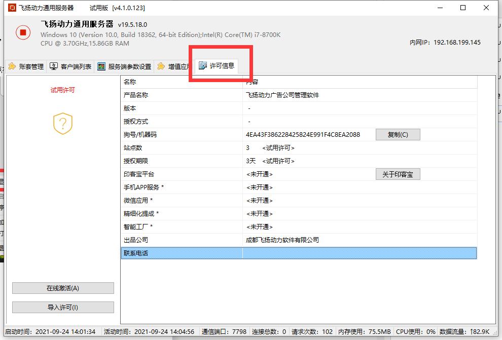 提示:如經(jīng)常需要激活,可能是主機(jī)硬件信息經(jīng)常變化,如果主機(jī)是使用無線網(wǎng)卡可以按照這篇文章檢查 (http://zaart.cn/FAQ/20210924145341.html)