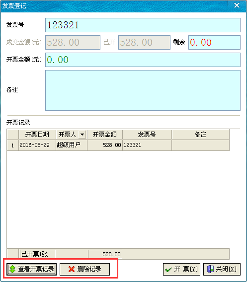 如登記錯(cuò)誤,可在“查看開票記錄”中選擇相關(guān)記錄進(jìn)行刪除