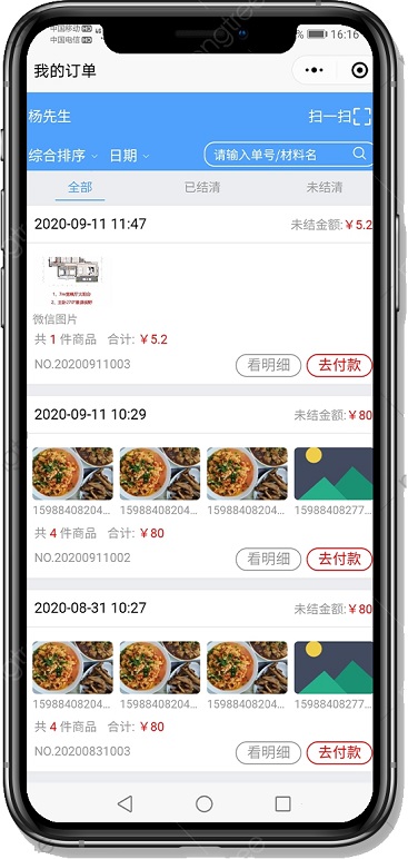 客戶可通過微信公眾號,小程序完成掃碼付款、對賬操作并可實時接收下單提醒、訂單進度等推送消息,所有版本均可開通。