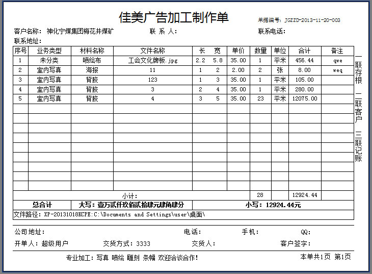 實現(xiàn)客戶圖片以訂單附件方式隨單走,業(yè)務(wù)員接圖并上傳至附件,制作人員按單取圖進(jìn)行制作,分工明確,避免混亂。同時也可建立圖片服務(wù)器,實行集中式管理。